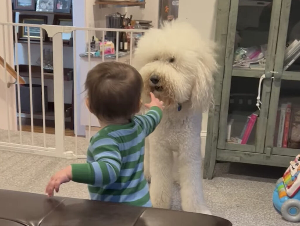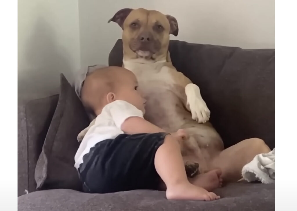 「お兄ちゃん」をしてくれてる! 赤ちゃんに寄り添う犬さん