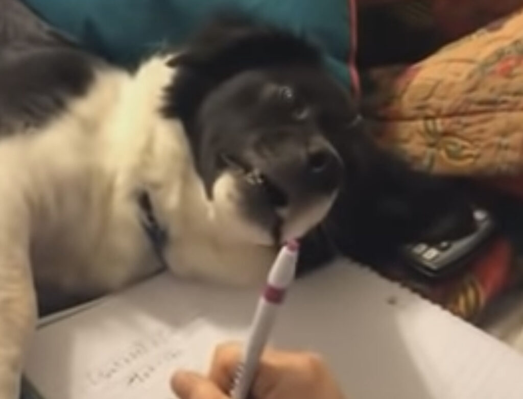 ノートの上に乗ってきたり、 ペンにじゃれて勉強妨害する猫さんの動画は よく見かけますが、こちらの飼い主さんは 愛犬に妨害されて困っているようです。 ノートに向かっていると、 犬「え?まだ宿題やるの?もう終わろうよ〜」と 頭をグイグイと押し付け... -