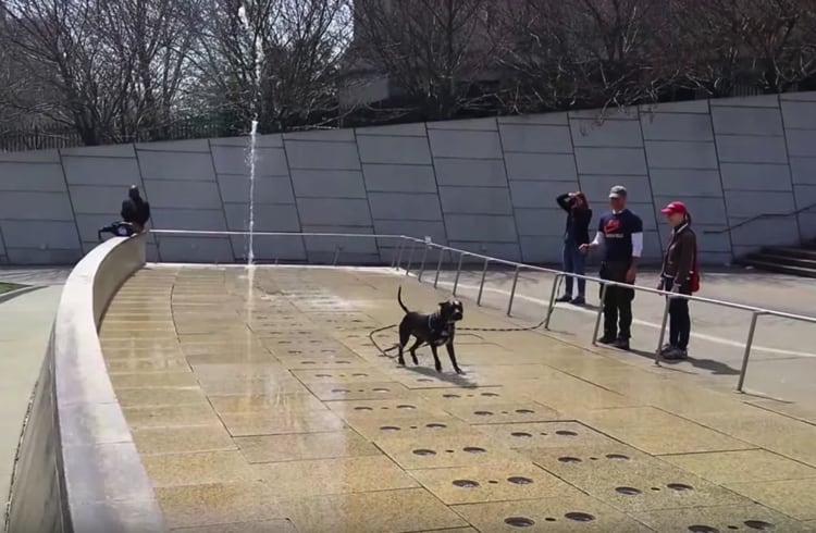噴水が大好きなワンコさん 高く上がる水に向かってジャンプジャンプ! さすがの跳躍力、たのしそう。 通りがかりの人も思わず撮影、 涼しげで元気になる光景なのでした。 出典:Greg Squared -