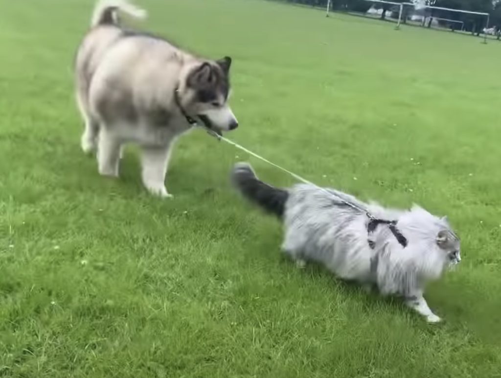 天気がいい日に公園にやってきたのは アラスカン・マラミュートの犬さんとメインクーンの猫さん。 今日は仲良く2匹でお散歩! お互い迷子にならないように、 リードで首輪をつないでおこうね。 さぁ、すぐに出発!とはいかずに 犬さんの方は芝生の匂いを... -