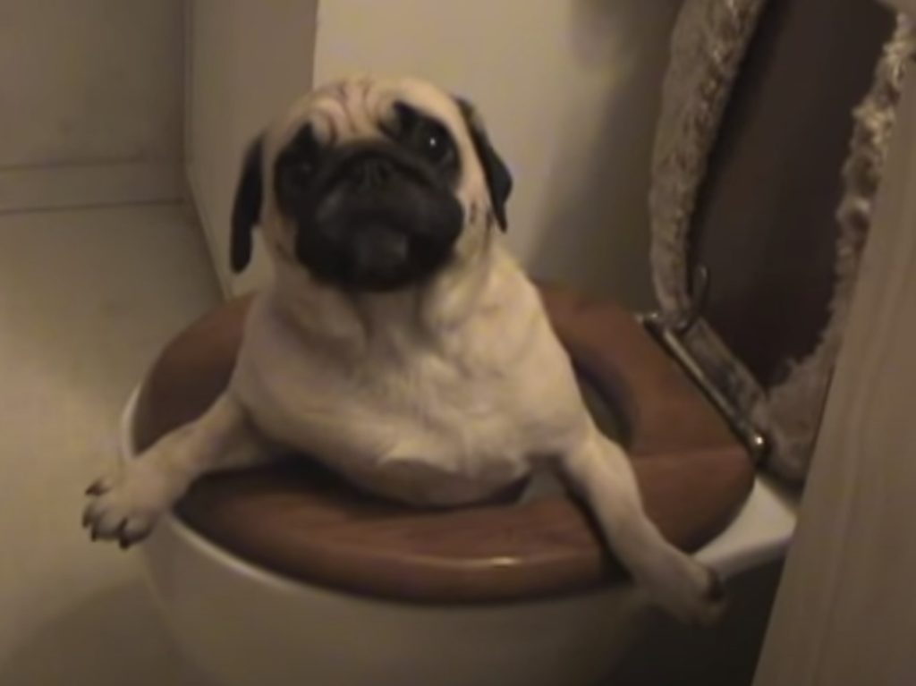 動画が始まった瞬間から、 せつない瞳でカメラを見つめているパグさん。 なんと、トイレの便器にすっぽり!! ちょっと目を離した隙に 落ちちゃったみたいです。 便座の上に登って遊んでいたのかな? しかも、悲しいことに、自分では抜け出せない...。 犬...