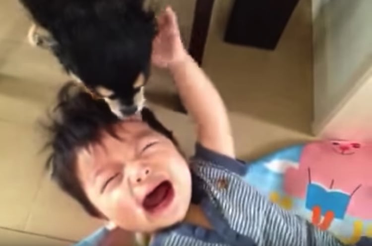 お助けワンコ!大泣きの赤ちゃんをなだめようとして…