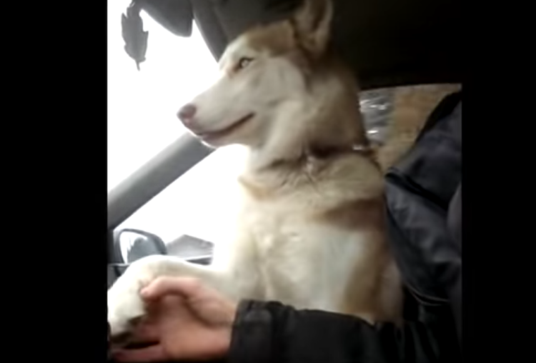助手席に乗って、飼い主さんとドライブ中の シベリアンハスキーさん。 最初は大人しく座っていたのですが ふと、寂しくなったのでしょうか、 飼い主さんに手を差し出して、 「手をつないで」のポーズ。 運転中なので手を話すと、 甘えるように鳴いて、また... -