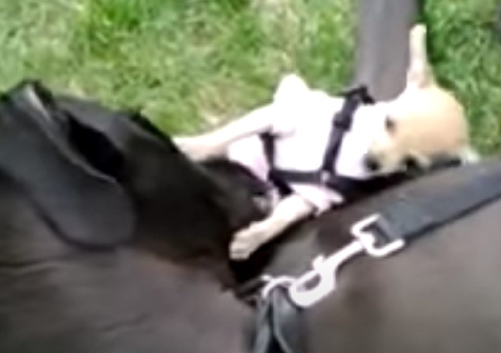 チワワ「僕は強いんだぞ〜」何十倍も大きい大型犬に立ち向かうけど…