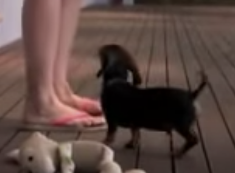飼い主さんのピンチ?小さい体で守ろうとするワンコ。