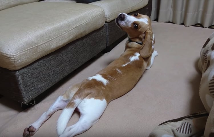 立場逆転?パパの扱い方が上手になってきたビーグル犬。