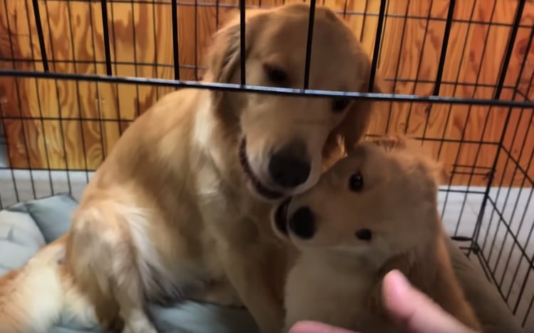 骨ガムの取り合いが可愛すぎ!ゴールデンレトリバー親子。