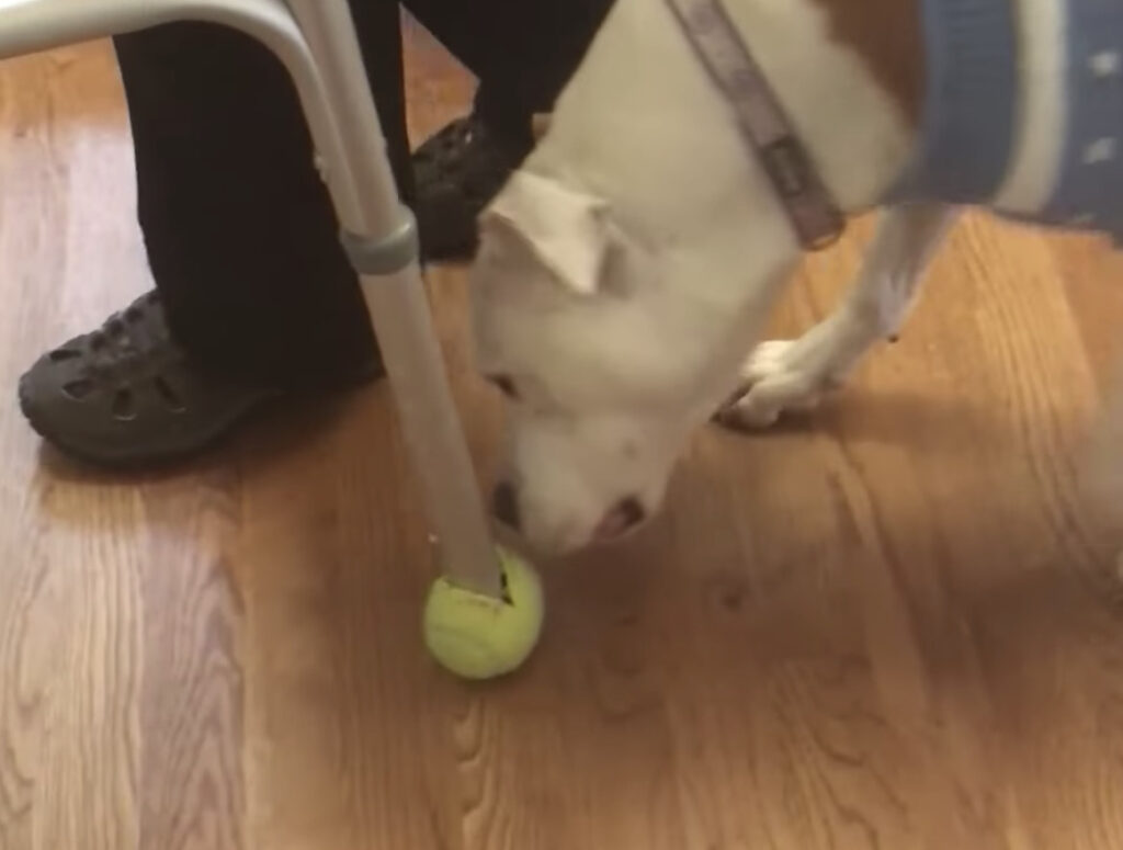 テニスボールを見つけた犬さん、でもなぜか取ることができない…?