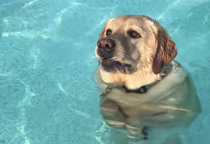 プールで泳いでいた犬、足が底につくことに気づくと…