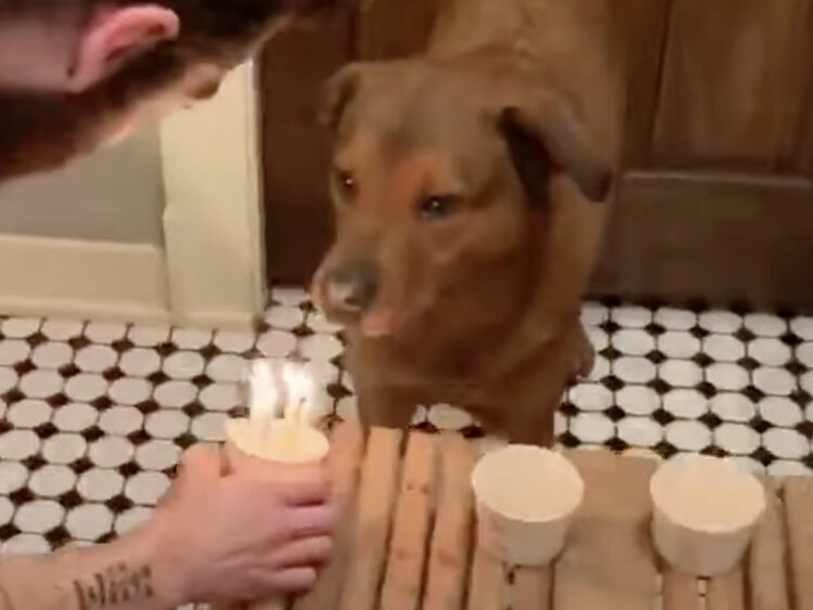 愛犬にお誕生日ケーキ♪ 面白い方法でロウソクを消してくれたよ!