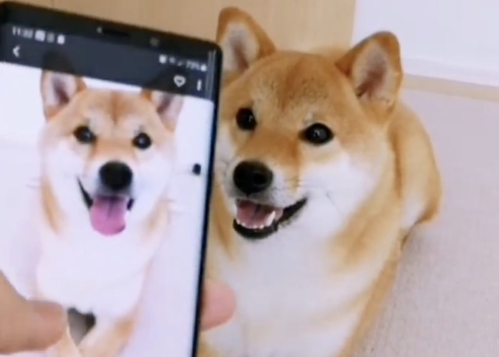可愛すぎる!スマホの写真を見て同じポーズをする柴犬。