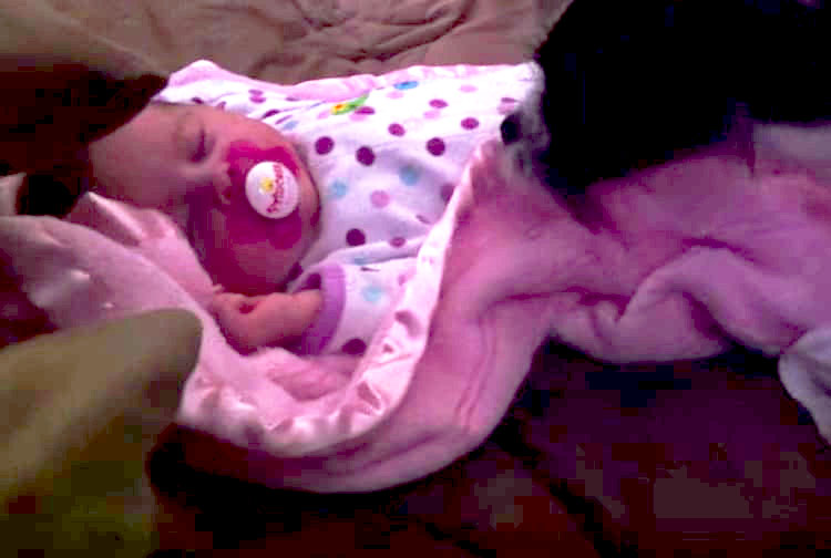 起こさないように、そーっと…赤ちゃんに毛布をかけてあげる犬。
