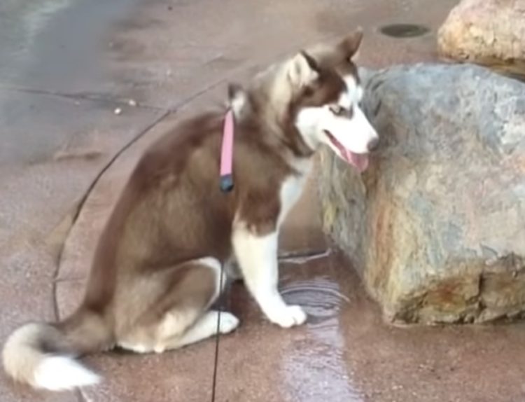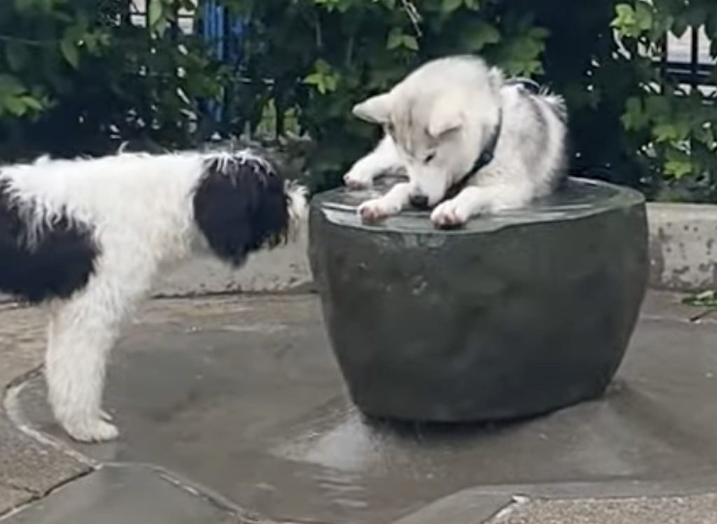 ハスキー子犬、噴水での遊び方が可愛すぎる!