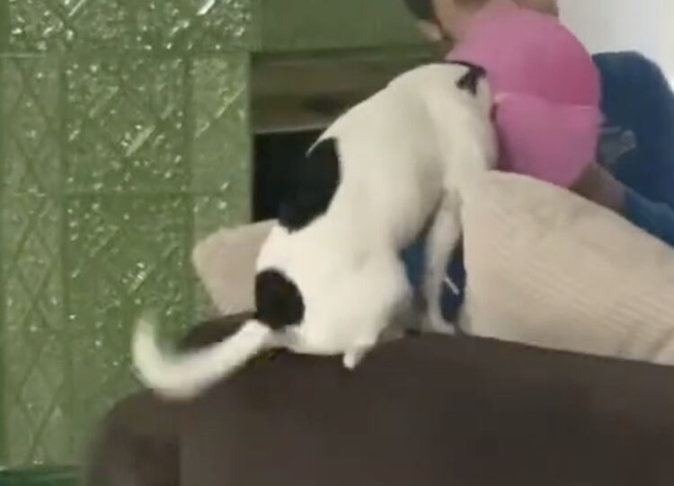 赤ちゃんが笑うとクルクル!遊び相手になってあげる優しい犬。