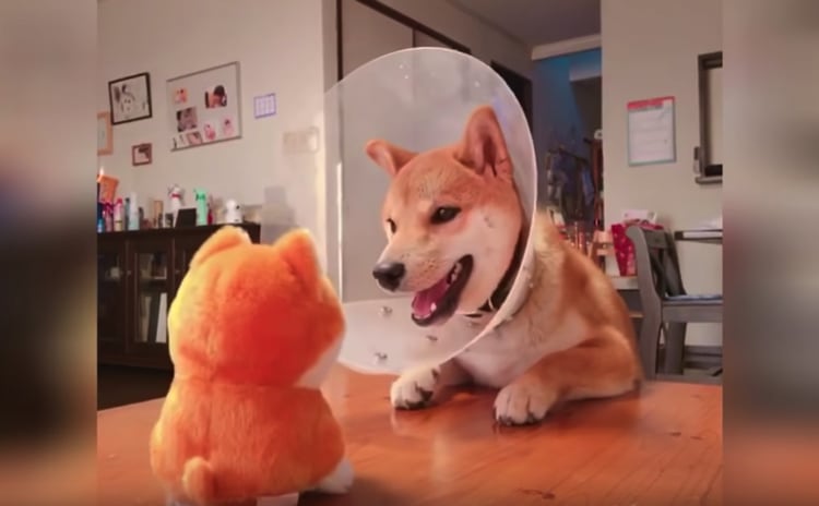 声が返ってくるぬいぐるみの「まねっこ豆しば」 と初対面した柴犬のりんご郎さん。 この子なんだろう〜と不思議そうに眺め... なぜか普通にワン!とは鳴かずに 「アゥアゥアゥワ〜」と話しかけるような柴犬さん。 まさか自分の声が帰ってくるとは思わず… ...