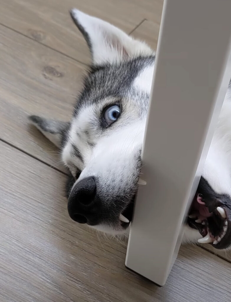 「この噛み心地がたまらんっ」なぜかテーブルを噛みたがる犬さん。