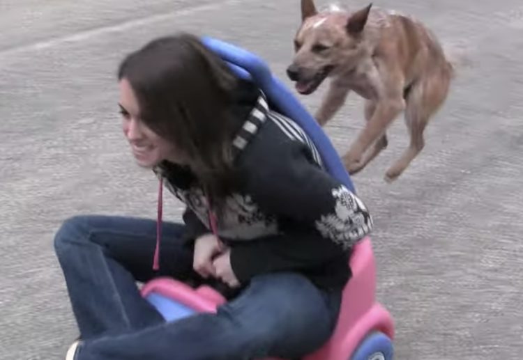 海外で愛犬と面白い遊びをしている人を発見。 女性がおもちゃの車に乗って、合図を送ると、 犬さんが後ろから車を押して、 車を動かしはじめました! そんなに強い力じゃないのに、勢いがついて物凄い速さ。 これにテンションが上がったのか、 ぴょんぴょ... -