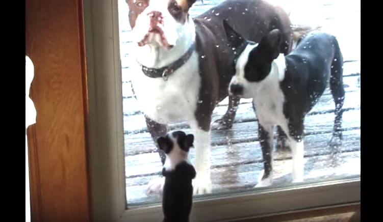 ぼくも一緒に出たいよう〜! っと、必死にアピールする子犬さん。 窓の外では、う〜んそうは言ってもねえ… とお父さんお母さん。 大きくなったらいっぱい遊べるからね! 出典:Waggle TV