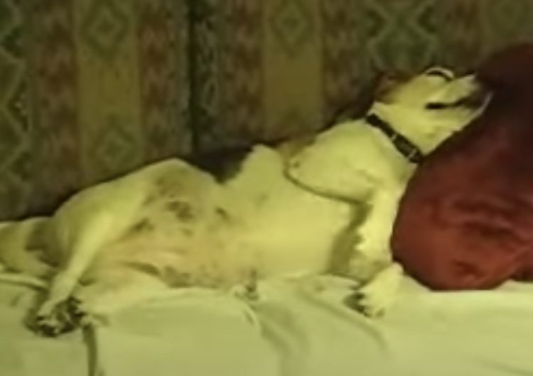 ゴハンの夢でも見ている? ベロがどうしても動いちゃうワンコ。