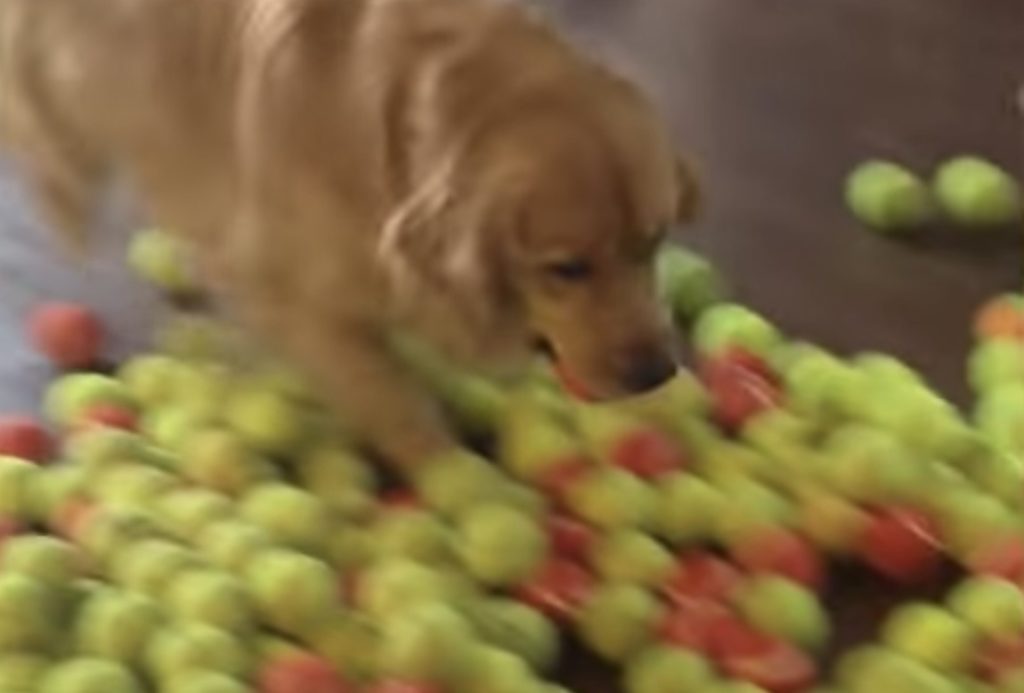 テニスボールが大好きな ゴールデンレトリバーさんの お誕生日プレゼントとして 大量のボールをプレゼントすることに! 部屋にボールを広げて、 愛犬を呼ぶと...ボールを見た瞬間に 犬さんは大喜び! たくさんボールがあるので 「色違いもある〜!どれにし...