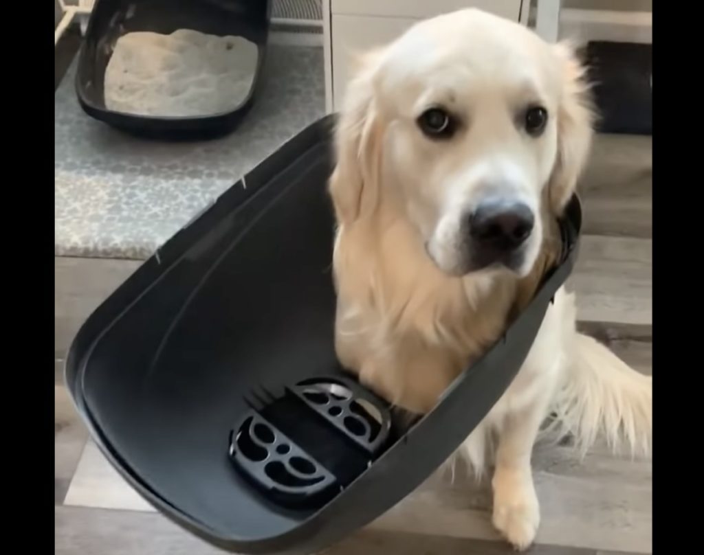 犬「助けてください…」猫のトイレに捕まっちゃった!