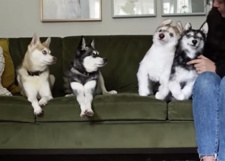 ソファに一緒に座っている飼い主さんと 二匹のハスキー犬さん。 その二匹の犬さんとそっくりなぬいぐるみを 飼い主さんがべた褒めしながら可愛いがると… 黒毛のハスキーさんは不服そうな顔をしながらも、 足を組んで「何でそっちを可愛がるんだよ」と 静か... -