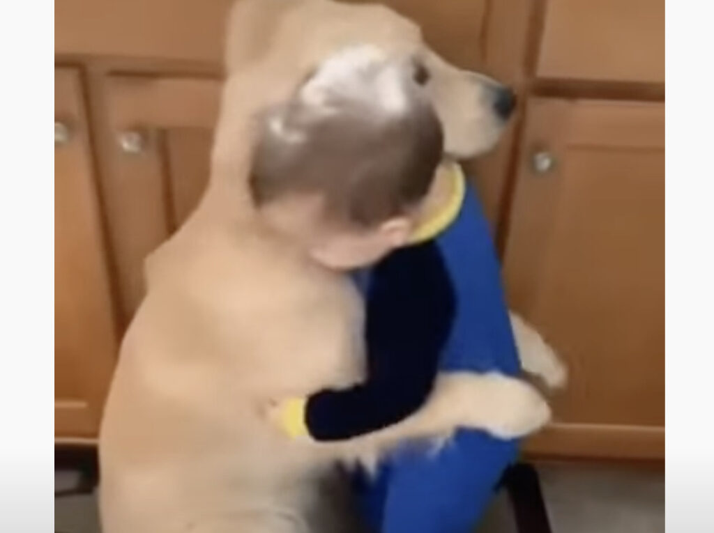 ゴールデンレトリバーと仲良しな男の子。 大好きな気持ちを伝えようと、 お座りしている犬さんをハグ♪ 「大好きだよ〜♪」とぎゅっとすると、 犬さんがそれに応えるように 男の子の肩に手を回してギュッ!! 犬「僕もだよ〜!」と言っているような ほんわか... -