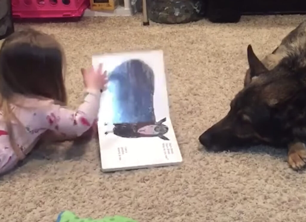 大きな声で絵本を読んでいる女の子。 本を読む練習をしている、 というわけではなく… 一緒に暮らしている仲良しの犬さんに 絵本の読み聞かせをしてあげているのです♪ こちらはジャーマンシェパードさん。 女の子の声に耳を傾けるように 床にペタンとなって... -