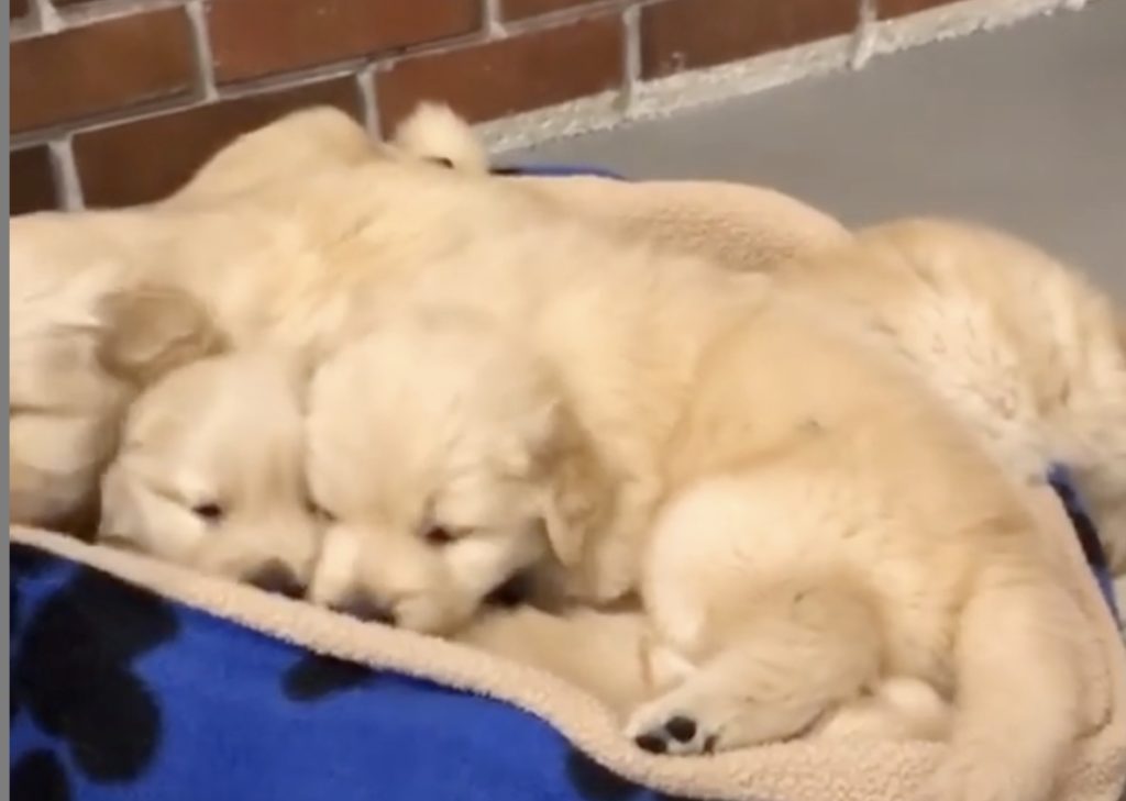 遊びつかれてみんなでお昼寝! 連なって眠る子犬が天使すぎ。