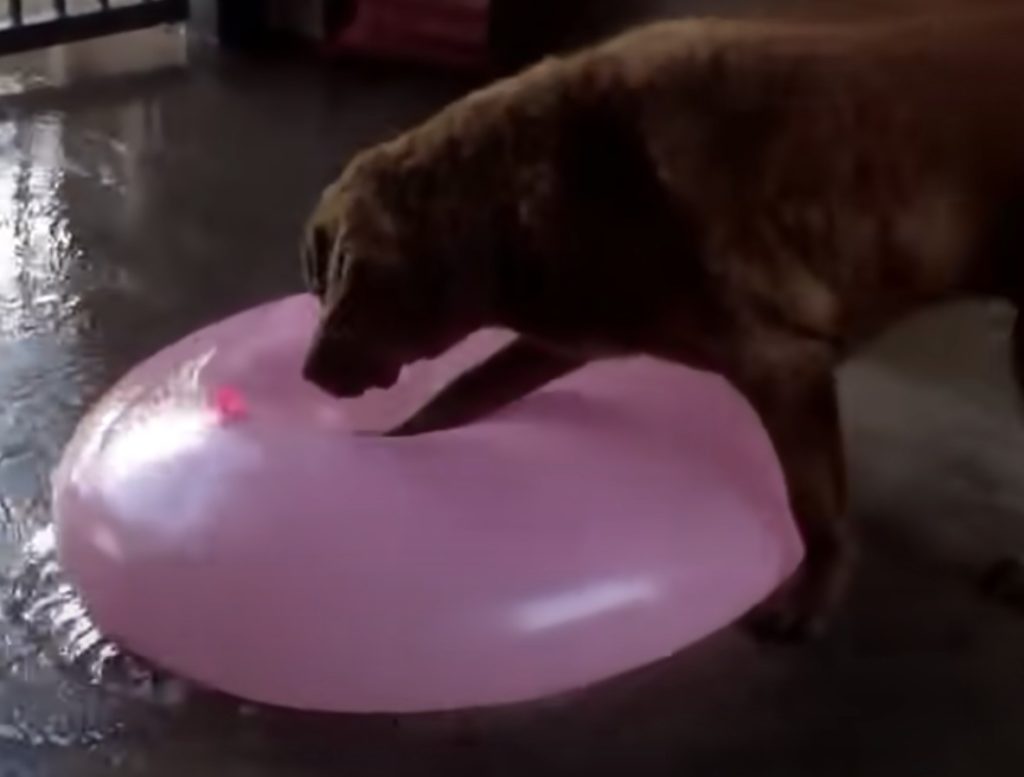 水風船といえば手のひらサイズの 小さなモノがイメージとして まず頭に浮かぶと思いますが、 飼い主さんが犬さんに水遊びを 思う存分楽しんでもらおうと時間をかけて 超巨大な水風船を用意! 水風船をみた犬さんは大喜びで ぷよぷよの感触を楽しみますが.....