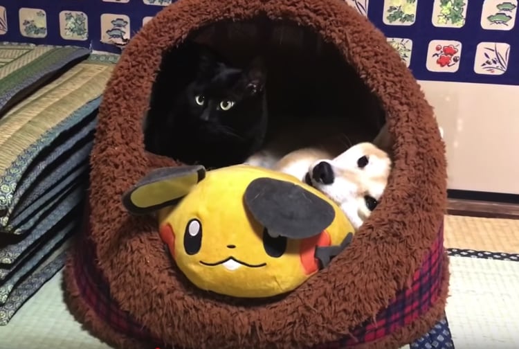 柴犬のももさんと黒猫の天さん ふたりで一つのベッドにぎゅむむっと詰まって ラブラブ状態で寝ようとしています。 さすがに狭くないのかな? むしろ幸せ? 羨ましくなる光景なのでした。 出典:Momo and Tenももと天 -