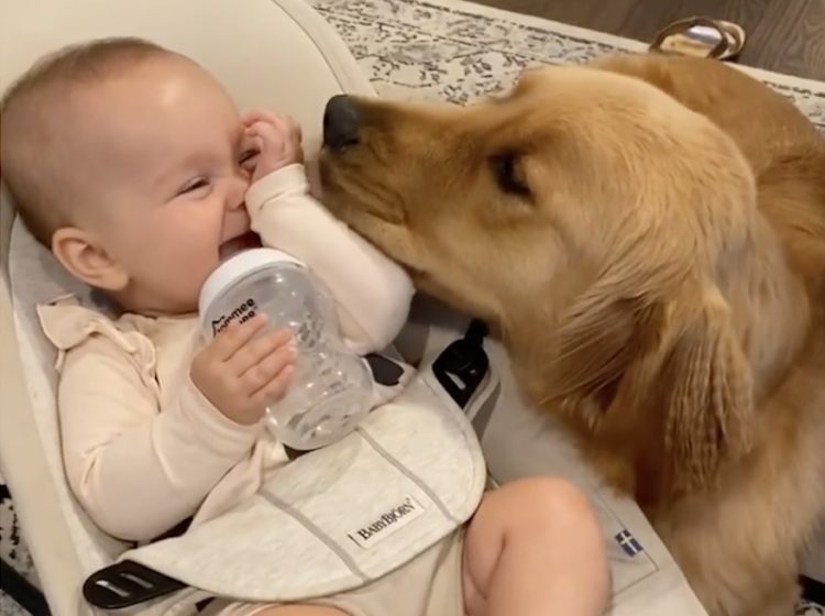 幸せが溢れてる♡仲良しな赤ちゃんとゴールデン。
