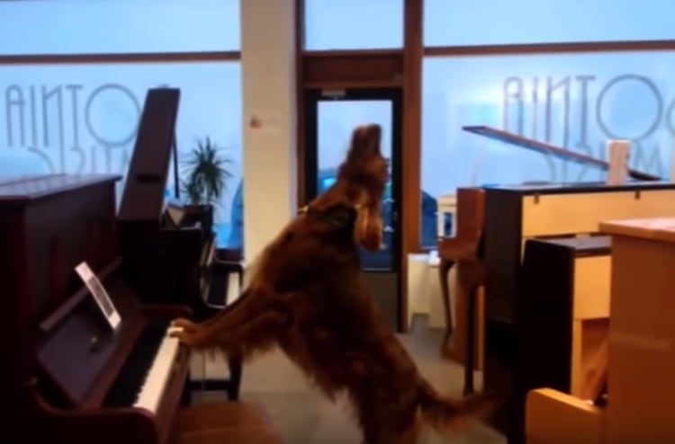 まさかの弾き語り?!ピアノショップで熱唱するワンコ。