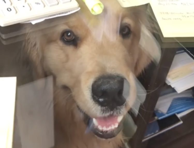 デスクで作業中の飼い主さん。 そろそろ作業もひと段落。 机に散らばった付箋や文具を片付けると... ガラステーブルの下から、 可愛い愛犬がひょっこり! いつからそこにいたのかな? 飼い主さんが作業している姿を こっそりガラス越しに見守っていたのか... -