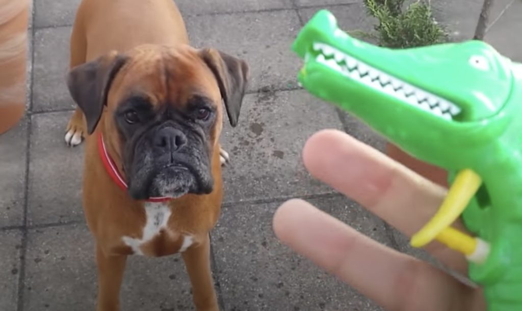 反射神経良すぎ!水鉄砲でワンコとスピード対決だ!