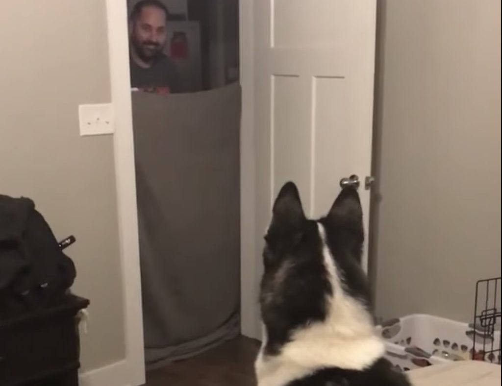 「ご主人が消えた!」ショックを受けて探し回るハスキー犬。