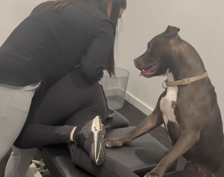 折れてないよね…? ボキボキ整体中の飼い主を心配する犬。