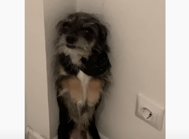 もう逃げ場がない…部屋のすみでブルブル震えるワンコ、その理由は?