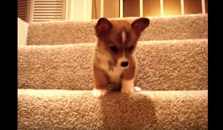 予想通りの萌え展開!階段で子犬がこくりこくり…
