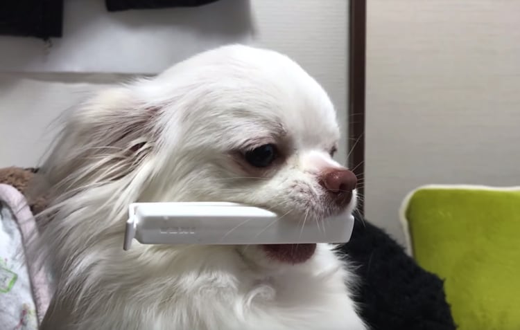 この表情!いたずらをやり過ごそうとするチワワ。