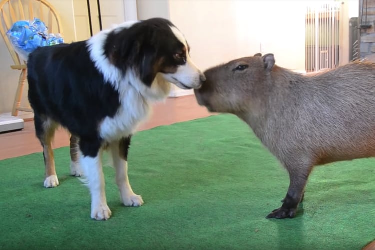 のっそのっそ… ゆっくりやってきたカピバラさん 犬さんたちは威嚇するのかと思いきや、 どうもどうも、こんにちは〜っと近づいていってご挨拶。 カピバラさんのほうも、慣れた様子で 犬さんの胸に顔を埋めてもふもふ。 体格も似ているし、 遠目で見ている... -