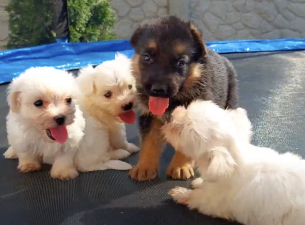 同じ子犬でも全然性格が違うもんね!マルチーズとジャーマンシェパードが遊んでみた♪