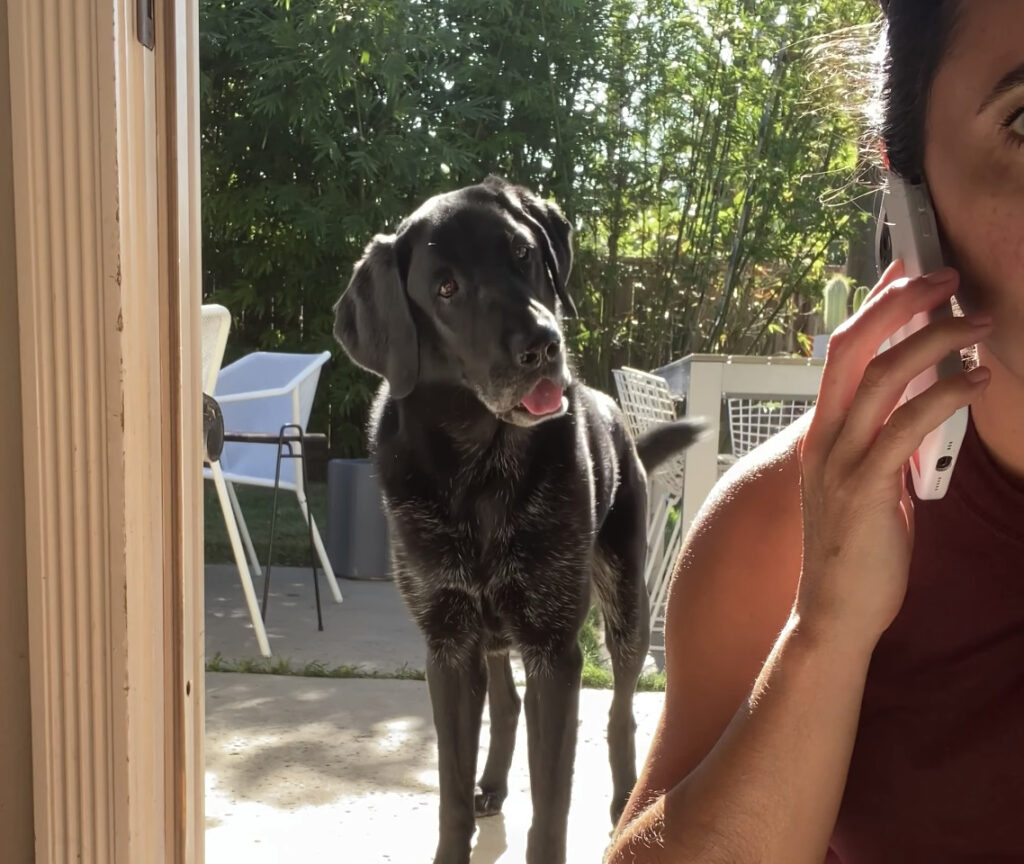 元気と誰かと電話している飼い主さん。 その通話相手とはどうやら 公園の話をしているみたい。 そう犬さんの大好きなワード「公園」! この会話を近くで聞いていた犬さんは 「えっ、これから公園に行くの? いま公園って言ったよね?」 電話の会話が気にな... -
