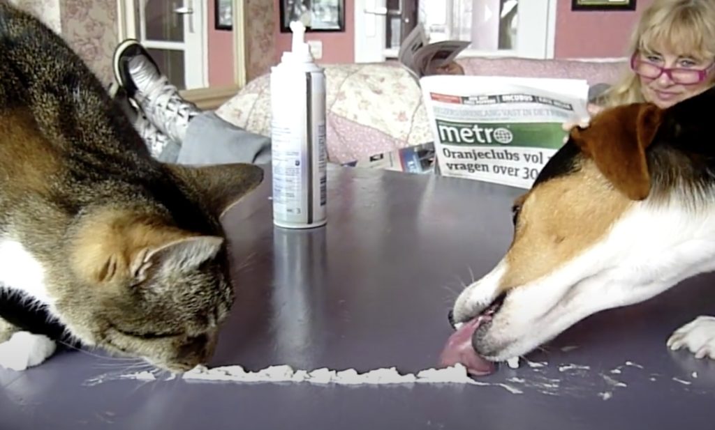 犬VS猫のクリーム早食い対決!食べ方にも性格が出る?