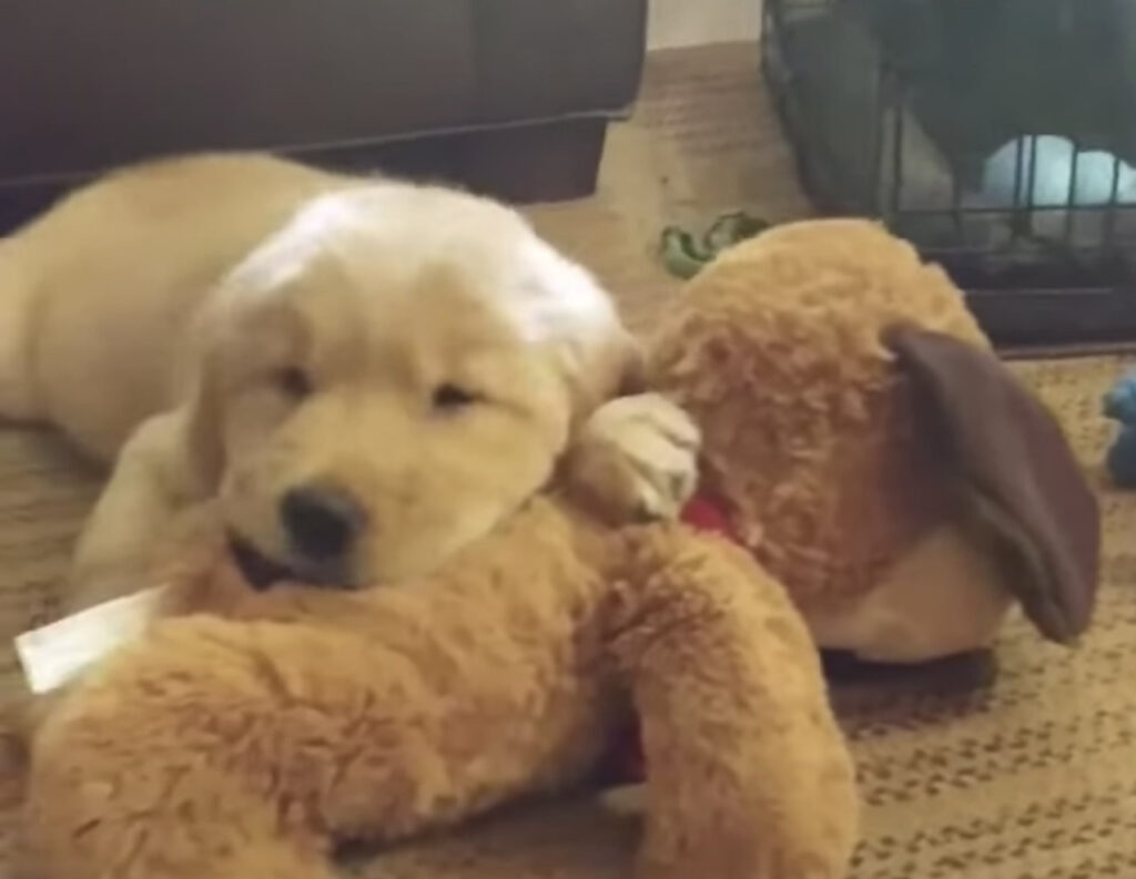 ゴールデンレトリバーの子犬さん、 小さい頃から一つのぬいぐるみを とても大切にしていたそうです。 お気に入りのそのぬいぐるみは 子犬さんとよく似た茶色の毛に 赤い首輪をつけていて、 くわえて運ぶのがちょっぴり大変なくらい 子犬さんの顔よりも大き...