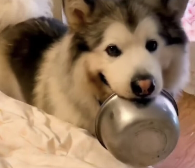 お腹を空かせた犬さんたち。 ゴハンの時間が待ちきれなくって、 「ゴハンまだですか!」の催促に。 飼い主さんの寝室までやってきちゃった!! おおきなモフモフ犬さんは、 MY皿を持ってきてアピール! もう1匹の犬さんは、 なぜかお気に入りのおもちゃを... -