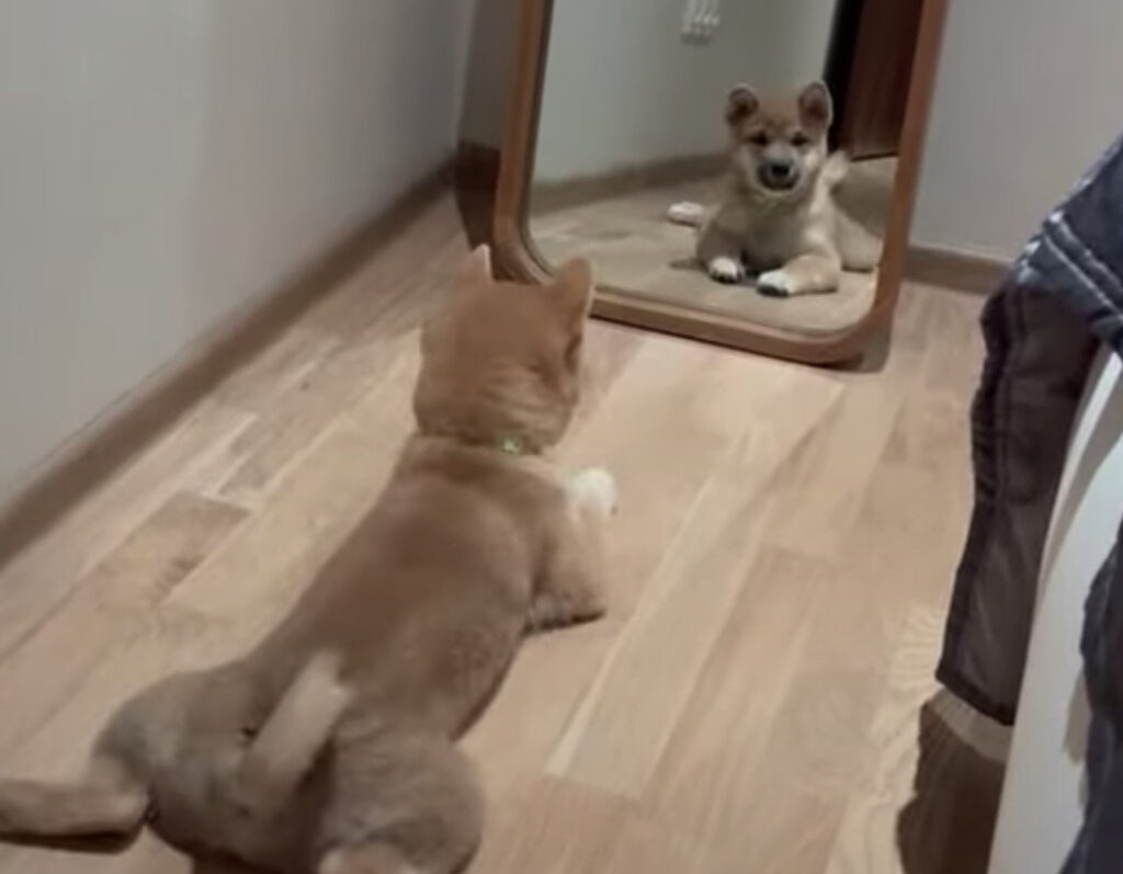 「どこから来たの?」柴犬、鏡の中に友達を発見?