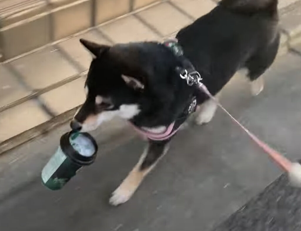 お散歩をしている黒柴さん。 横断歩道を渡る時には 右左をちゃんと確認するおりこうさん! 楽しそうにお散歩する犬さんの口元には、 おもちゃ...ではなくドリンクのカップ?? どこかで拾ってきたのかな。 ストローを咥えて、器用にお散歩♪ コーヒーカップ... -