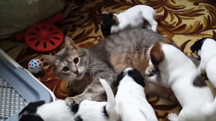 犬「にゃんにゃんだ!」猫を発見して大喜びする子犬たち。