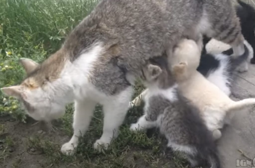 ミルクの時間だよ〜! お母さんの猫の元に、 ぞろぞろと集まってくる子猫さんたち。 我先にとミルクを飲もうとする子猫の中に、 おや?ちょっと体の大きな子がいるぞ? 誰よりもミルクを飲みたそうに、 ずっと母猫を追いかけているのは なんと白い子犬さん...